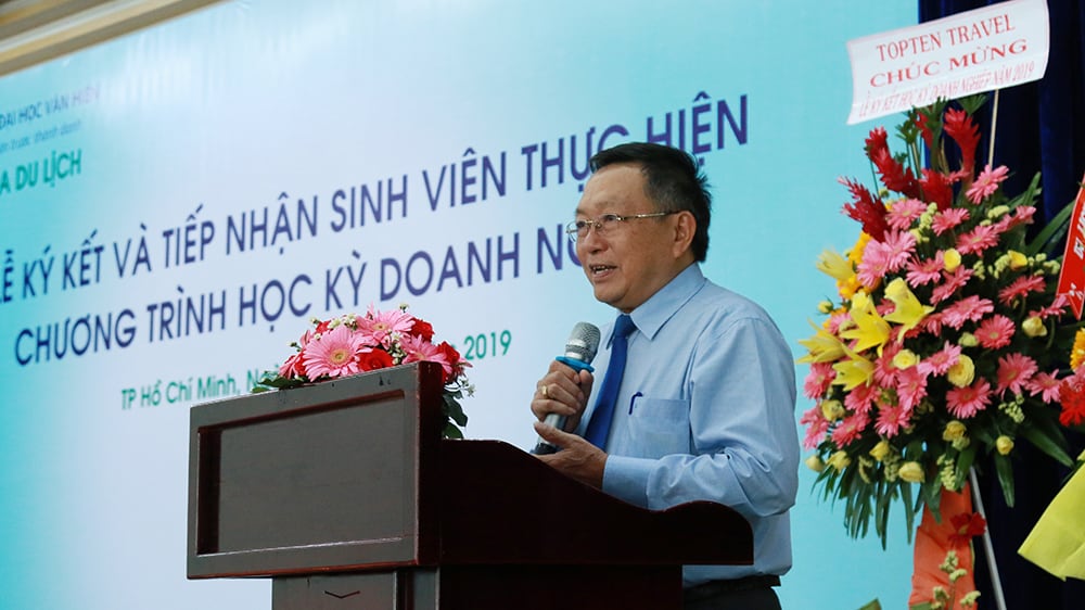 “Học đi đôi với hành” – Đào tạo kiến thức thực tiễn, trang bị kỹ năng chuyên môn để sinh viên tự tin bước vào thế giới nghề nghiệp là một trong những tôn chỉ đào tạo của trường Đại học Văn Hiến nói riêng và hệ thống giáo dục HEDU nói chung. Ngày 03/05 vừa qua tại cơ sở 613 Âu Cơ – trường Đại học Văn Hiến đã diễn ra “Lễ ký kết và tiếp nhận sinh viên thực hiện học kỳ doanh nghiệp” giữa trường Đại học Văn Hiến và các doanh nghiệp lữ hành. Buổi lễ có sự góp mặt của Thầy Lê Sĩ Hải – GĐ Thường trực; Thầy Đặng Thanh Vũ – GĐ Điều hành; Ông Nguyễn Tấn Trung – GĐ Hợp tác Doanh nghiệp; Ông Nguyễn Duy Cường – Trưởng phòng Đào tạo; PGS. TS Phạm Xuân Hậu – Trưởng khoa Du lịch và gần 30 doanh nghiệp lữ hành có uy tín tại TP.HCM cùng với hơn 100 sinh viên khoa Du lịch có mặt tại buổi ký kết.
