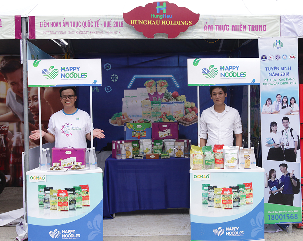 Bên cạnh đó, HungHau Holdings tham gia Liên hoan Ẩm thực Quốc tế – Huế 2018 mang đến những sản phẩm đã làm nên thương hiệu trong suốt thời gian qua như: các sản phẩm mì nui bún HappyNoodles, sản phẩm hải sản đông lạnh HappyFood, nước uống tinh khiết Hodzo, các sản phẩm của Ochao, Dalatex,… HungHau tập trung vào nguồn nguyên liệu sản xuất đảm bảo chất lượng, cùng với uy tín đã được khẳng định tại thị trường Quốc tế với các dòng sản phẩm tiêu dùng tốt cho sức khỏe. Sản phẩm của HungHau được người tiêu dùng yêu thích sau khi sử dụng samling tại Lễ Hội, được đánh giá cao và hứa hẹn sẽ tin dùng lâu dài. Liên hoan Ẩm thực Quốc tế Huế diễn ra tại Công viên Thương Bạc, trong đó có hơn 20 gian hàng quốc tế và hơn 70 gian hàng đến từ các doanh nghiệp với nhiều hoạt động nhằm tôn vinh nét độc đáo, tinh hoa văn hóa ẩm thực của các vùng miền tại đất nước Việt Nam cũng như của Huế đên với du khách trong và ngoài nước.