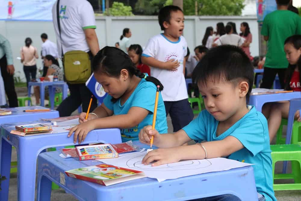 Các bé hứng khởi tham gia cuộc thi vẽ tranh.
