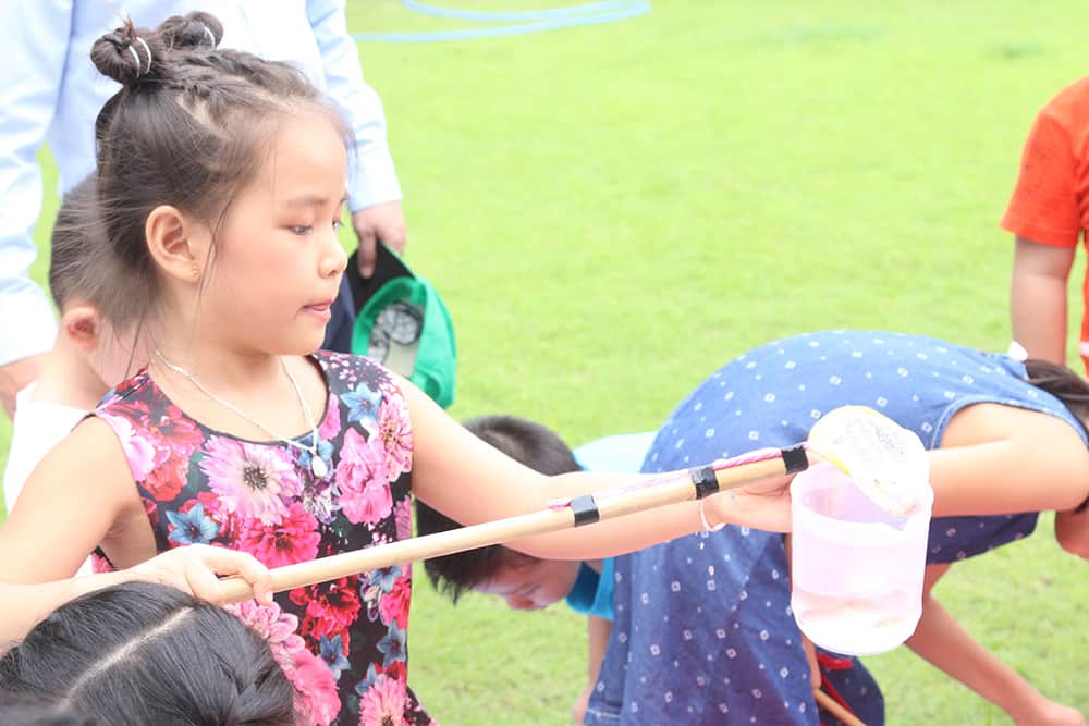 Bé thích thú với hoạt động câu cá tại HungHau Junior Expo.