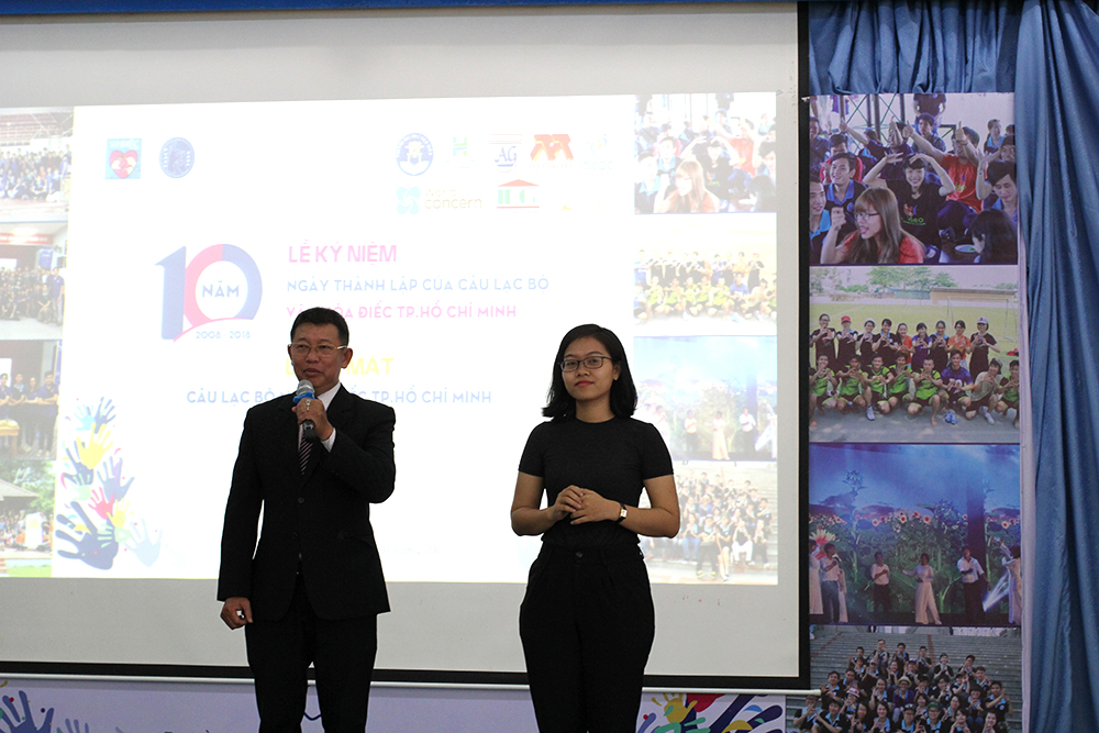 Giới thiệu ý nghĩa logo mới và tiết mục cắt bánh kem chúc mừng “Lễ kỷ niệm 10 năm thành lập CLB Văn hóa Điếc Tp. Hồ Chí Minh”.