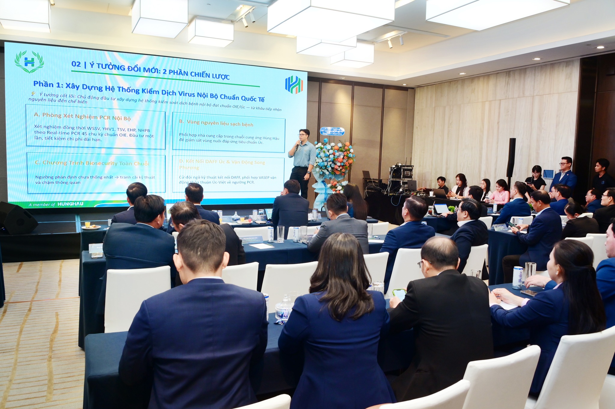 3/ Ông Phạm Duy Trung – Chuyên viên Ban phát triển Kinh doanh, Công ty Cổ phần Nông nghiệp Hùng Hậu – Chủ đề: Vượt Rào cản Kiểm dịch Virus Úc & Phát triển dòng Shrimp Cocktail