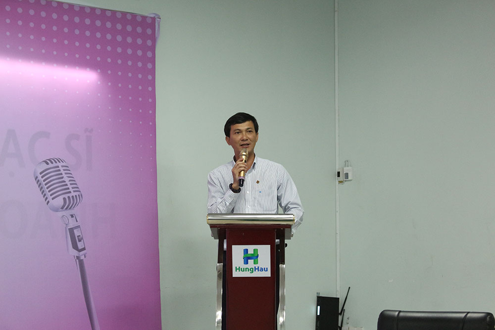 Ông Võ Minh Khang phát biểu tại cuộc thi hùng biện “Tôi là người Hùng Hậu”. Ông cho biết ngoài những giải thưởng giá trị, người đạt giải còn có cơ hội được làm việc vào những vị trí mới.