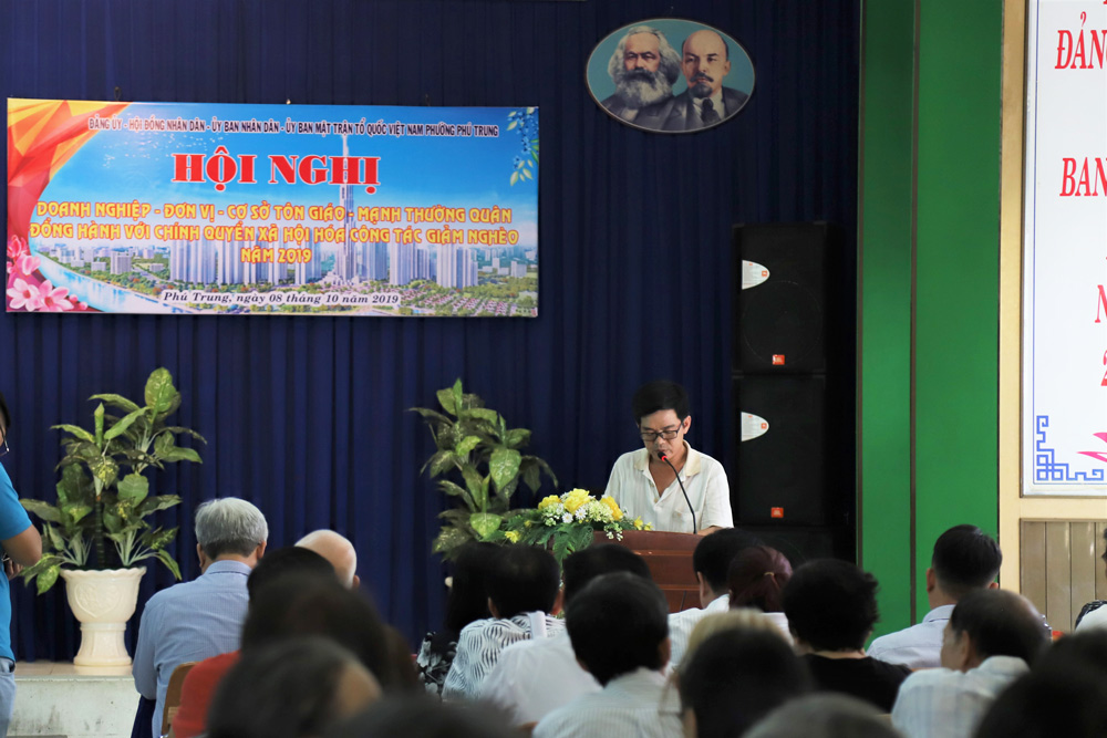 Chiều ngày 08/10, tại UBND phường Phú Trung – 525 Âu Cơ, Phú Trung, Tân Phú đã tổ chức hội nghị “Doanh nghiệp – Đơn vị – Cơ sở Tôn Giáo – Mạnh thường quân đồng hành với chính quyền xã hội hóa công tác giảm nghèo năm 2019″. Nhằm báo cáo kết quả thực hiện công tác giảm nghèo trong công tác giảm nghèo của Quận Tân Phú. Ghi nhận, tôn vinh, biểu dương sự hỗ trợ, giúp đỡ thiết thực của các doanh nghiệp – đơn vị – cơ sở tôn giáo chung tay cùng phường Phú Trung, tạo điều kiện cho bà con có hoàn cảnh khó khăn thuận lợi cho việc giảm nghèo.