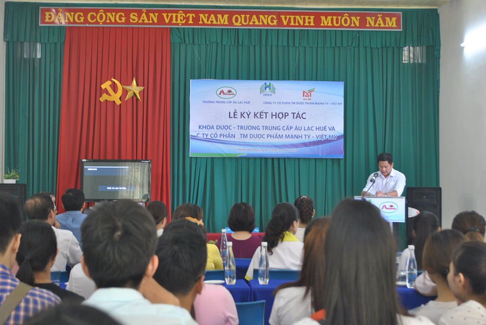 Lễ ký kết hợp tác giữa Trường Trung cấp Âu Lạc – Huế và Công ty CP Thương mại Dược phẩm Mạnh Tý – Việt Mỹ.