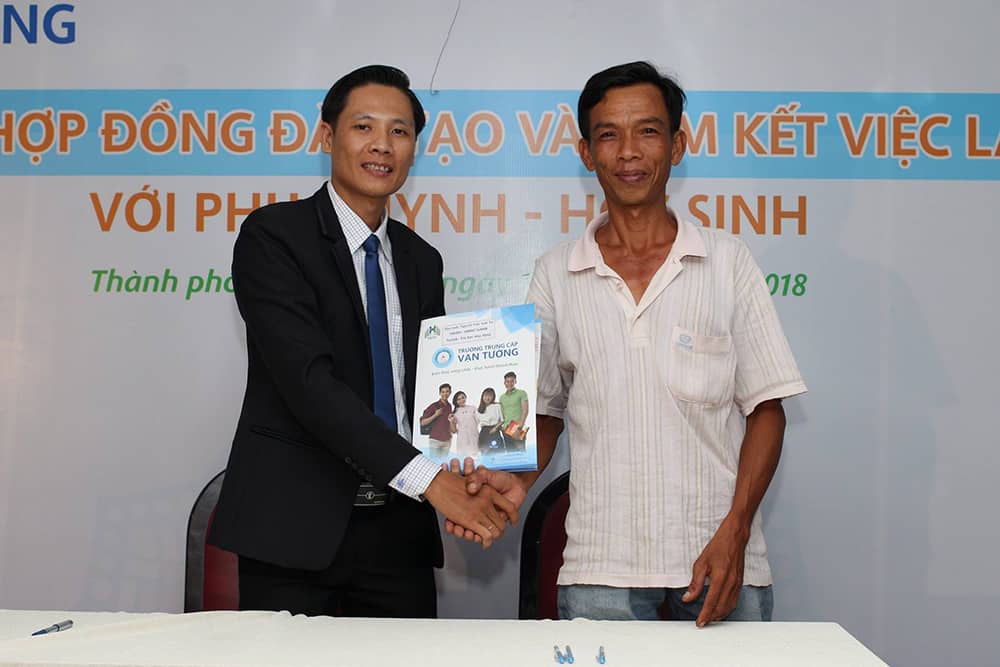 Chiều ngày 10/06, Trường Trung cấp Vạn Tường đã tổ chức buổi Lễ ký kết hợp đồng đào tạo và cam kết việc làm dành cho học sinh trúng tuyển đợt 1/2018. Đây là sự cam kết trách nhiệm của Nhà trường về đảm bảo chất lượng đào tạo và việc làm sau khi tốt nghiệp dành cho học sinh đang theo học tại Trường kể từ năm học 2018-2019.